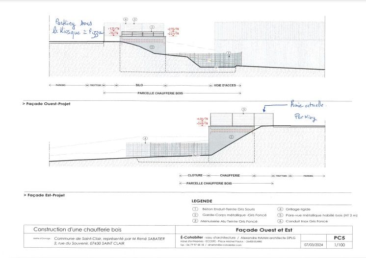 La chaudière biomasse (bois déchiqueté) sera implantée dans le talus sous le distributeur de pizza afin d’alimenter par camion et par gravité le silo.