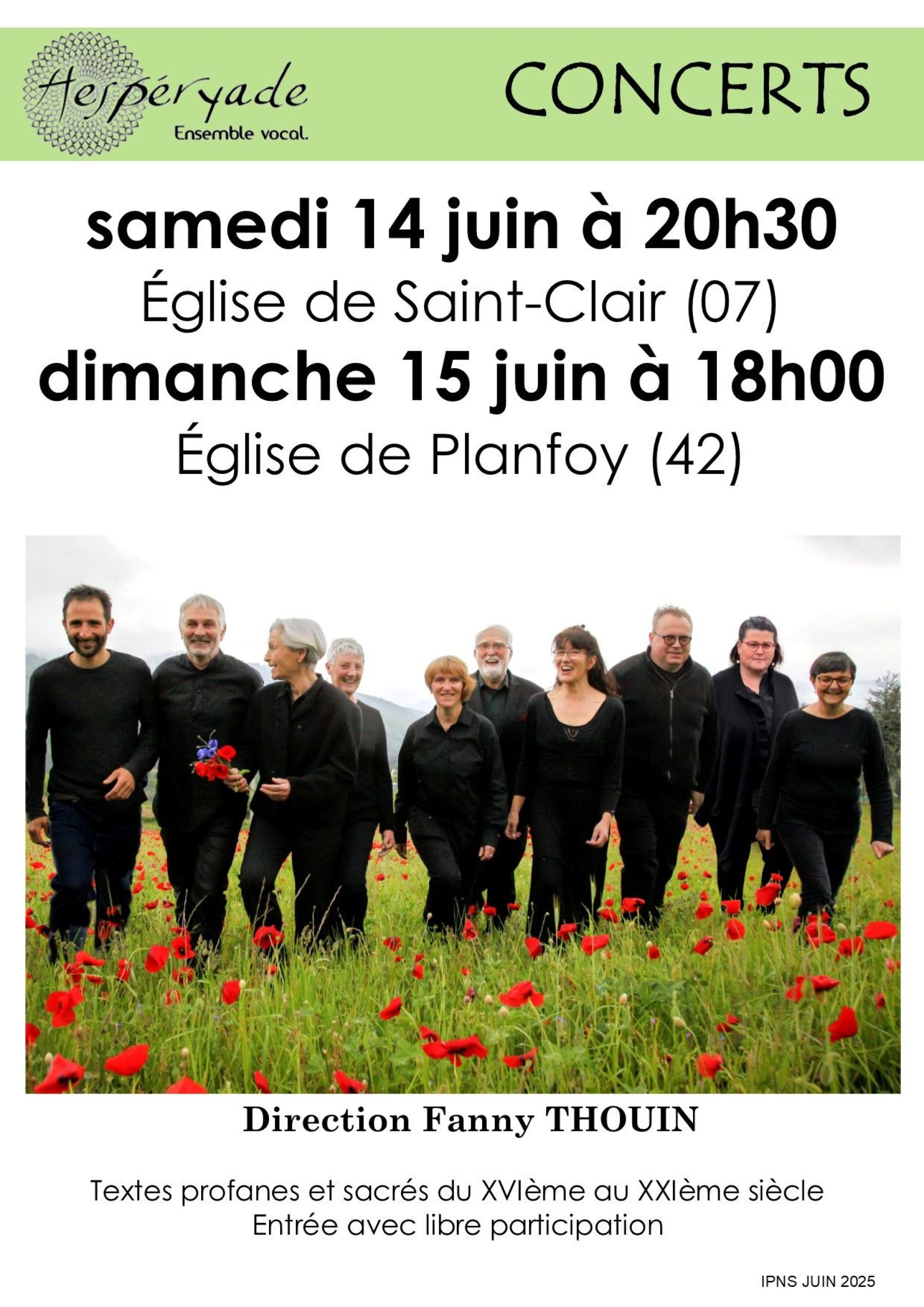 Culture et loisirs Le 14 juin 2025 à 20:30 Eglise, place du Centre07340 Saint-Clair Libre participation